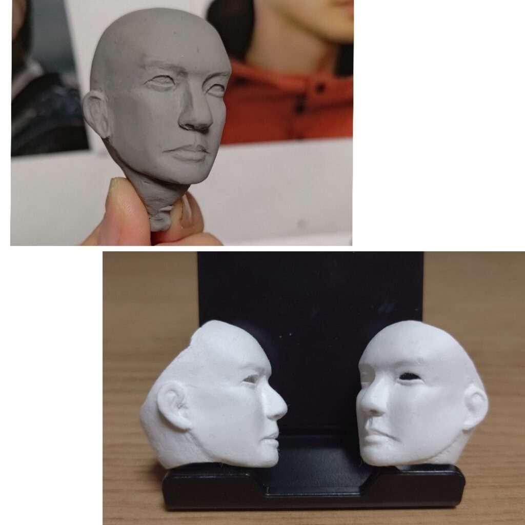 はじめは油粘土で頭部作るも、不注意で顔面を変形させてしまい😓、